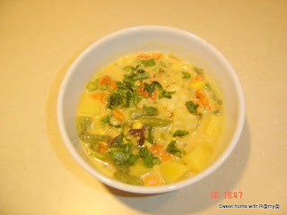 5. Dont miss the salt. Let everything get mixed well. Bring it to boil and then garnish it with coriander leaves squeeze in some lime juice and may be u can add a tsp of butter on it for the rich taste.
