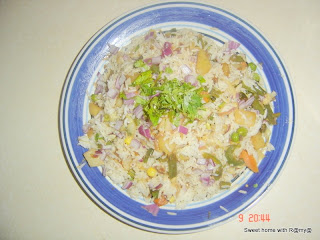 7)Finally add the boiled rice squeeze in some lemon juice and garnish it with cilantro and serve it hot.