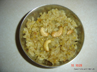 - Garnish it with cashews and raisins fried in ghee. Your Sakkarai pongal is ready to be served.